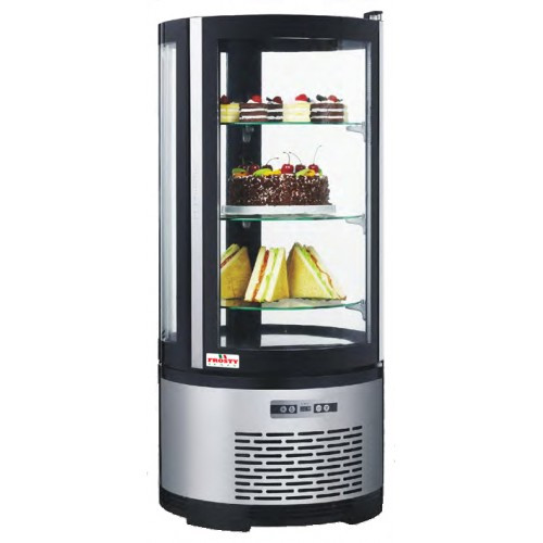 Вирізняється високою якістю й сучасним дизайном. Призначена для демонстрації кондитерських виробів, десертів, свіжої випічки, холодних закусок тощо. Технічні характеристики температура +2°/+8 °C, LED-підсвітка корпус покритий чорною емаллю Потужність, кВт: 0.18 Напруга, В: 220 Тип скла: гнутий